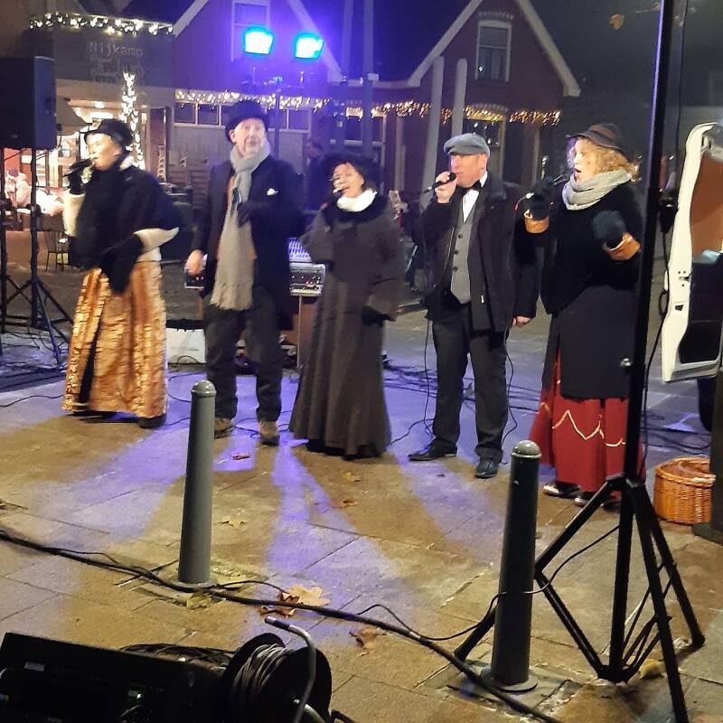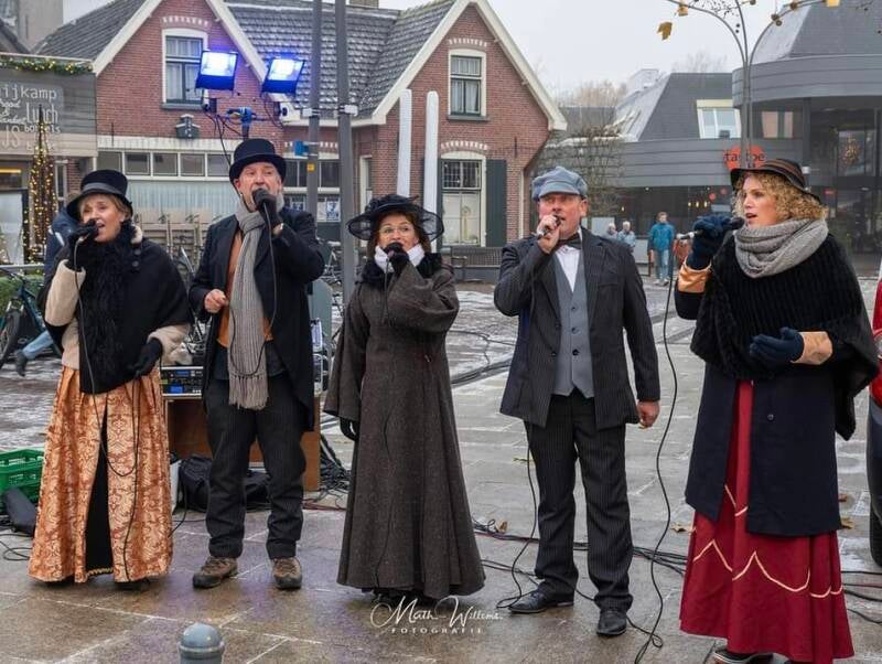 Vrijdag 15 december stonden we opnieuw in onze Dickens outfit en wel op de kerstmarkt in Holten. Het was een gezellige drukte en ondanks de koude buitentemperatuur hebben we, met ons uitgebreide en gevarieerde kerstrepertoire, een warme kerstsfeer gebracht.