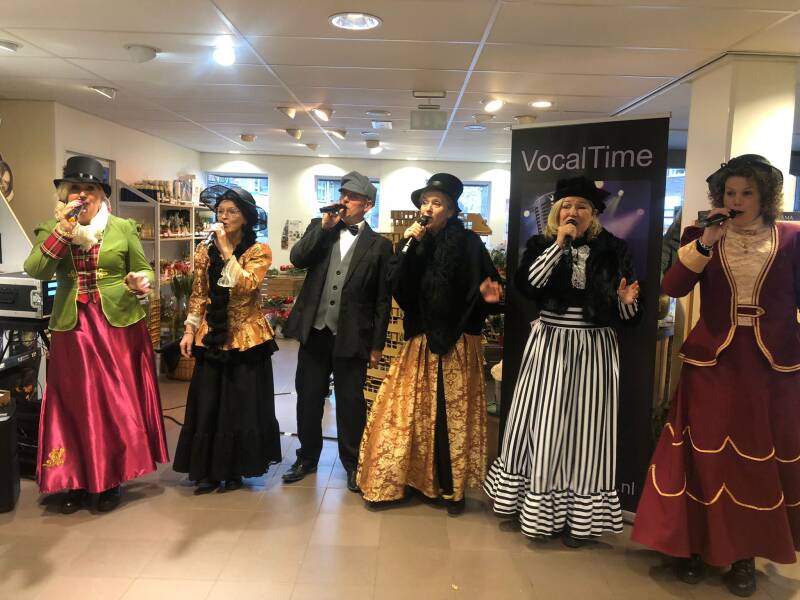 Op 21 november was de aftrap van onze kersttour bij Intratuin in Almelo. Je zou ons bijna "huisband" van Intratuin kunnen noemen. Medewerkers van een aantal zorginstellingen hadden een leuke kerstbon van hun werkgever ontvangen en mochten deze, buiten de reguliere winkeltijden, bij Intratuin besteden. Buiten werd iedereen al met een vrolijke noot ontvangen d.m.v. een draaiorgeltje en binnen kon men, onder het genot van een kop koffie, warme chocolademelk of andere lekkernij, genieten van de kerstklanken van VocalTime.