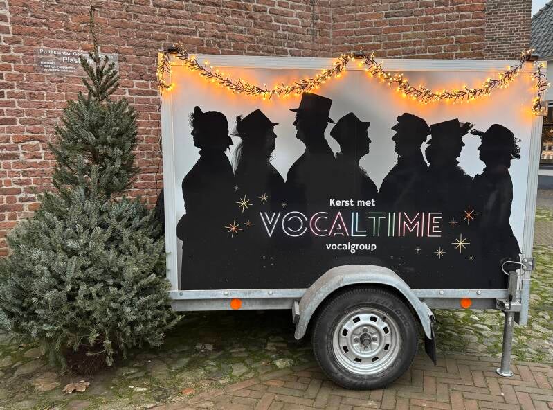 De kerstmarkt in Holten is één van de vele gezellige plaatsen waar het publiek hun kerstinkopen kan doen en waar Vocaltime zorgt voor de passende muzikale entourage.