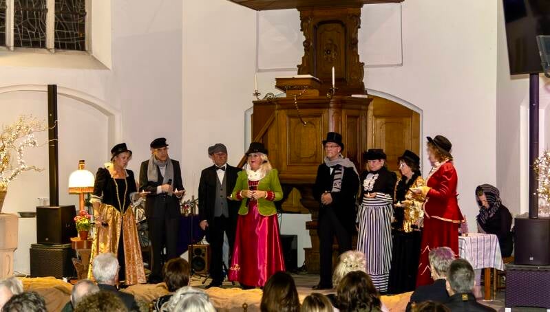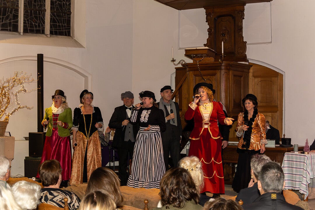 Het rondreizende gezelschap VocalTime was uitgenodigd om alle mensen, arm of rijk, te verwarmen met hun sfeervolle kerstliederen.
